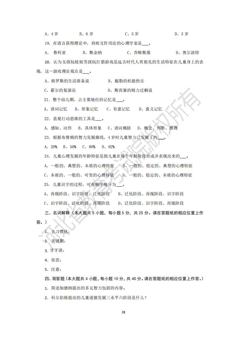 河北省普通專升本考試兒童發展心理學模擬試卷及參考答案