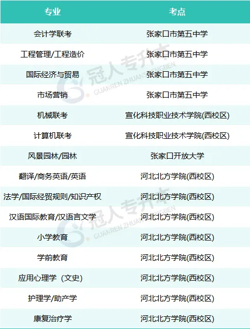 2025年河北張家口市專升本考試地點(diǎn)匯總:張家口市第五中學(xué),宣化科技職業(yè)技術(shù)學(xué)院西校區(qū),張家口開放大學(xué),河北北方學(xué)院西校區(qū)。參加2025年河北專升本考試的考生可以就近選擇專升本考試